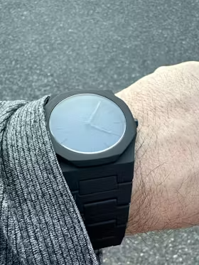 ✔ A sleek, minimalist timepiece featuring bold Arabic numerals on a matte black dial.